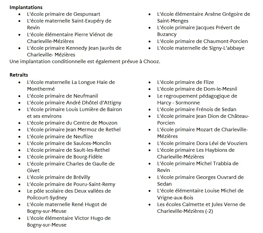 Prévoyant une baisse de 528 élèves à la rentrée prochaine, il a été décidé de supprimer 29 classes un peu partout dans les Ardennes et ce malgré la large mobilisation des parents d'élèves.