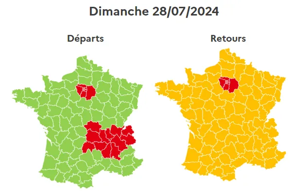 Dans le sens des retours, l'Île de France est classée noire, le reste de la France, dont les Ardennes, est classé rouge.