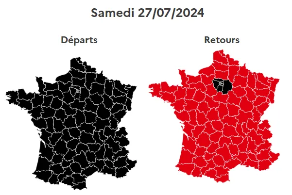Ce samedi, la France entière est classée noire dans le sens de départs, ce qui signifie que la circulation sera extrêmement difficile.