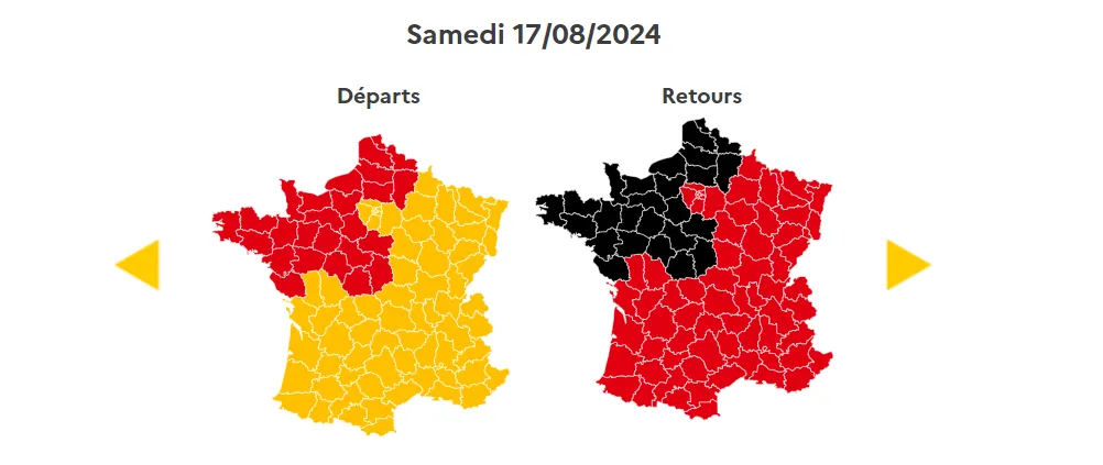 Dans le sens des retours, ce samedi, le nord-ouest du pays est placé en noir "circulation extrêmement difficile". Le reste du pays est en rouge "circulation très difficile".
