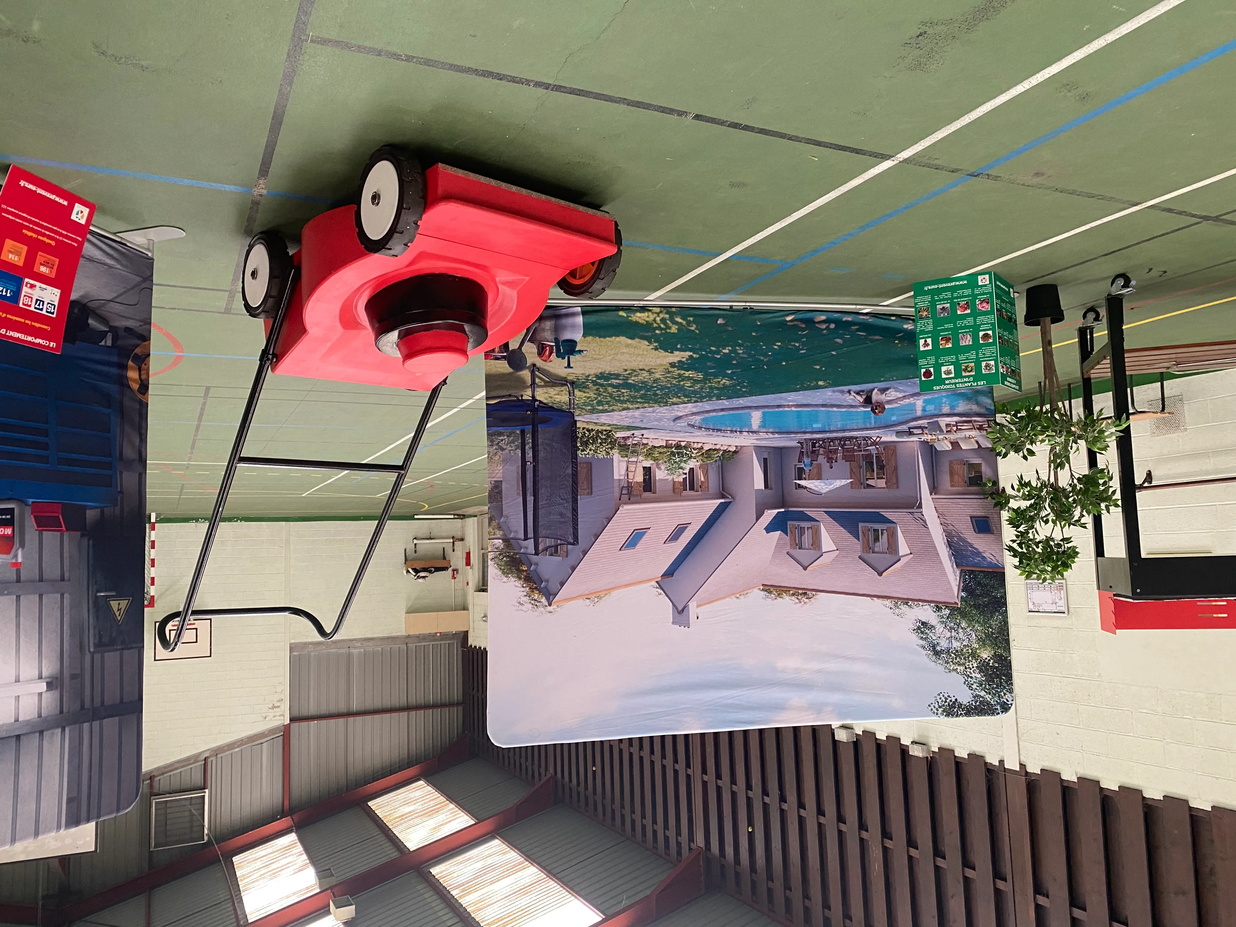 Concrètement, le but était de permettre aux adultes de se mettre dans la peau d'un enfant de 2 ans. Avec des chaises, des toilettes ou encore des bouteilles géantes. Chaque élément de la maison a vu ses dimensions multipliées par 2 et son poids par 6.