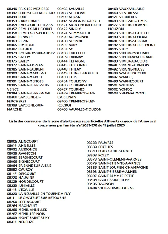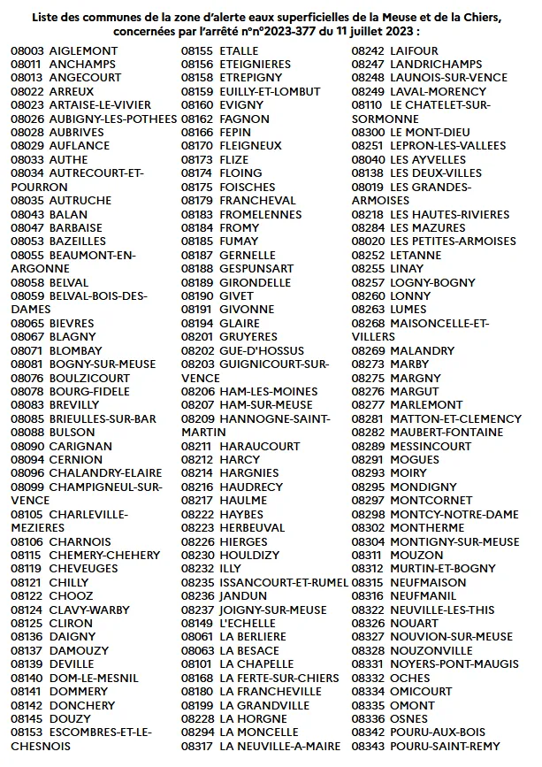 Cela concerne plus de 200 communes de Givet à Tagnon, en passant par Charleville et Douzy.