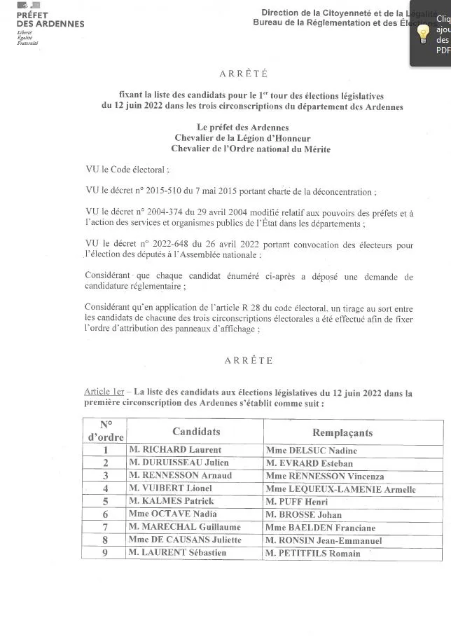 Les noms des candidats aux 3 circonscriptions qui composent le département des Ardennes ont été officialisés.