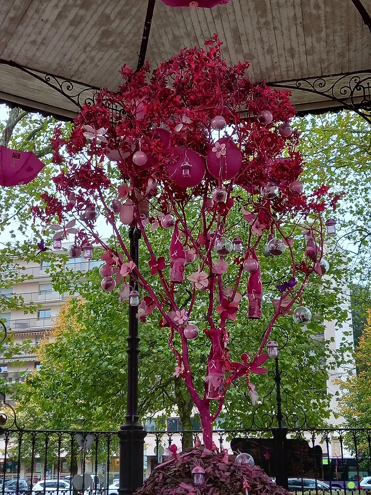 A Charleville : un arbre de l’espoir et une tour solidaire. Les enfants des centres de loisir Marie Thérèse Berger et le château des fées ont participé à Octobre Rose au kiosque de la gare, totalement redécoré. Merecredi 15 octobre, ce partenariat entre les centres de loisirs, les enfants, les éducateurs, la ville de Charleville et le Point Séniors a été inauguré en présence des élus, des Dragon Ladies 08 et de la Ligue contre le Cancer.