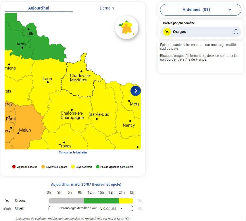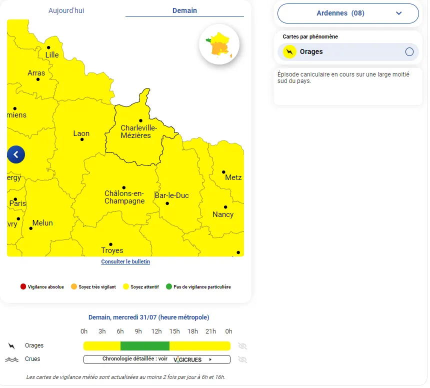 Les Ardennes et la Marne ont été placés en jaune par Météo France concernant les orages ce mardi.