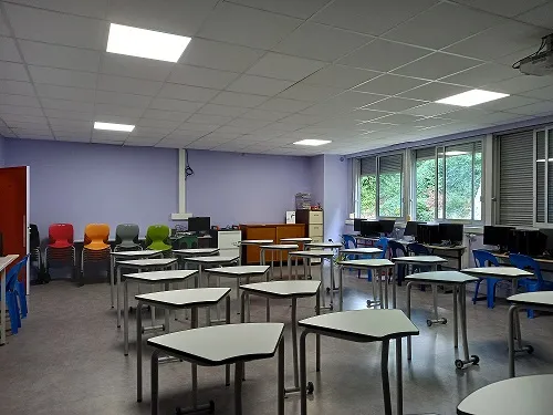 Au-delà : la salle de classe peut désormais servir à des cours de science, à cours d’informatique et au-delà à des réunions, voire des conseils de classe